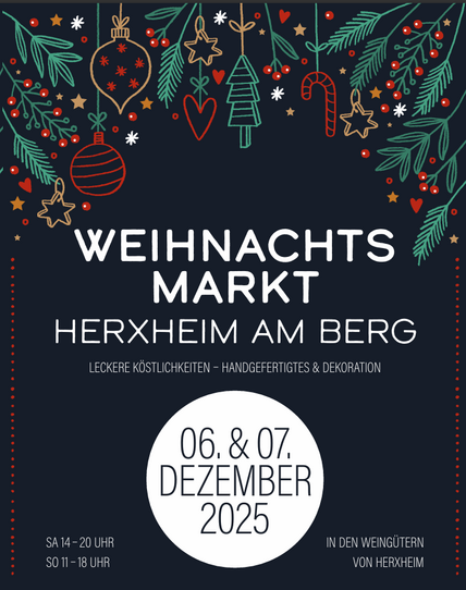 Leckere Köstlichkeiten- Handgefertigtes und Dekoration können Sie am 06. & 07.12.2025 in fünf Herxheimer Weingütern und Ausschankstellen genießen.