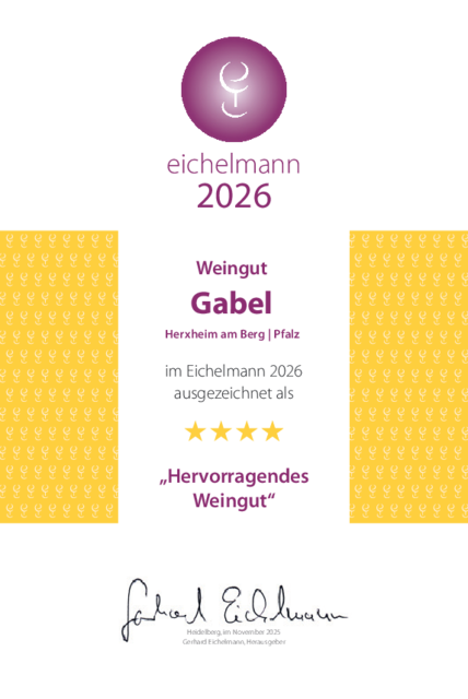 Wir freuen uns, dass wir auch in diesem Jahr wieder mit vier Sternen im Eichelmann als "hervorragendes Weingut" ausgezeichnet wurden.