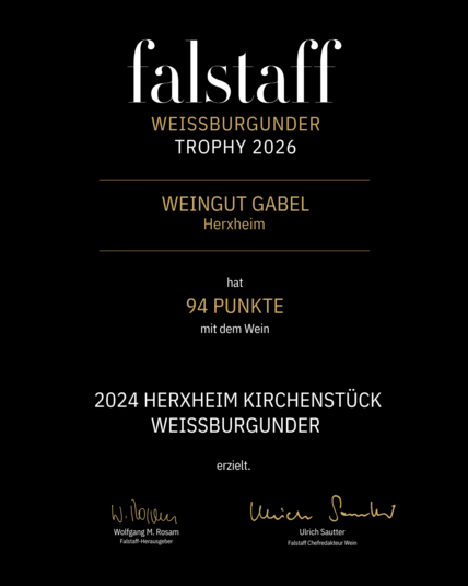 "Aus der aktuellen Kollektion auf erneut durchgängig sehr gutem bis hervorragendem Niveau ragt der Weißburgunder Kirchenstück heraus, der bislang von uns am höchsten bewertete Wein von Oliver Gabel: Er zeigt ein eindringliches, komplexes Bouquet mit dezenter Holzwürze, einer feinen, rauchigen Reduktion, etwas Schießpulver, Zitrusnoten und leichter Hefewürze, am Gaumen besitzt er auch feine Birnennoten, ist elegant, sehr harmonisch, druckvoll, leicht salzig und sehr nachhaltig."